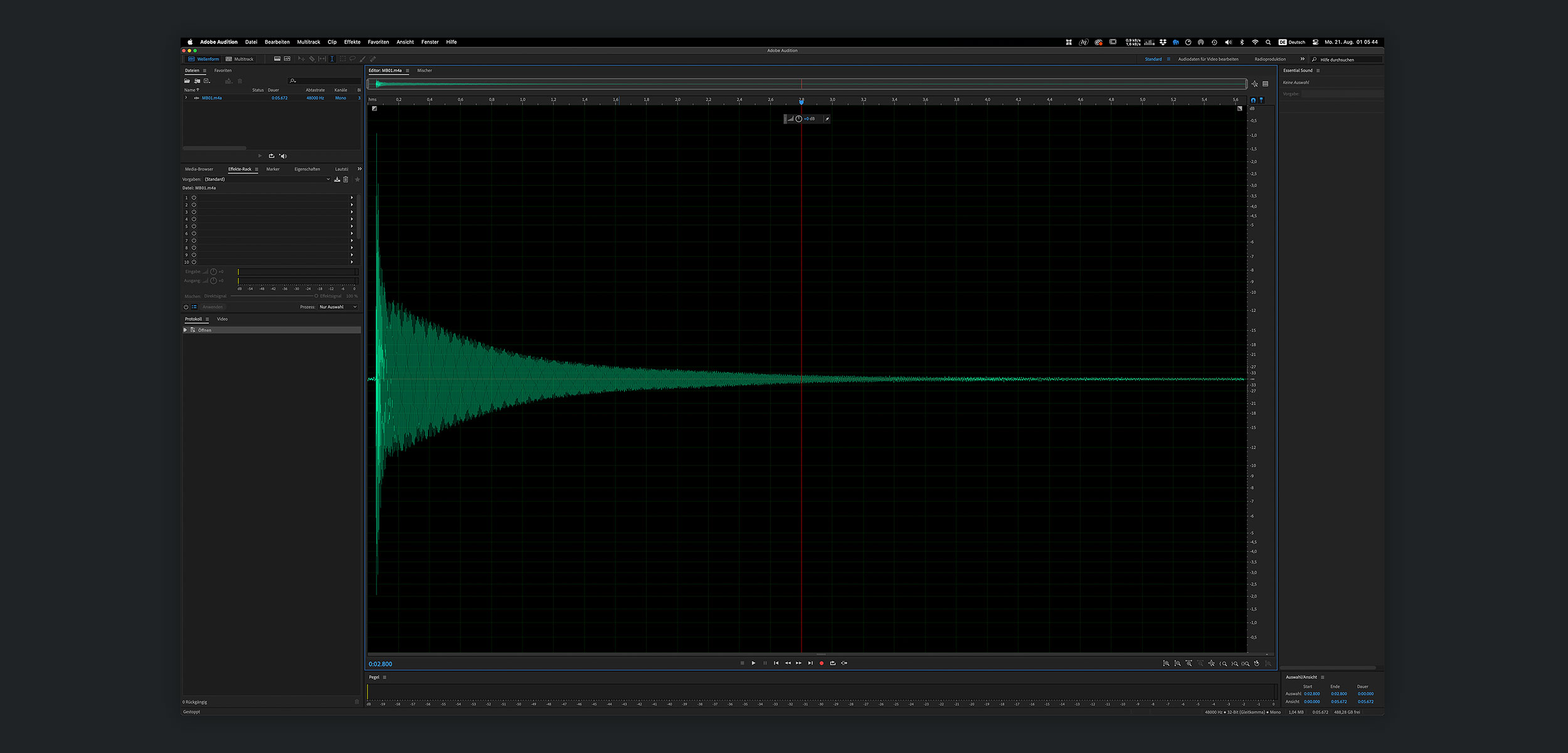 Wir haben also nun Rohmaterial für unseren Sampler erzeugt. Wenn ihr nur einen Ton / ein Geräusch aufgenomen habt, könnt ihr diesen Abschnitt [03] überspringen. Solltet ihr auch mehrer Töne / Geräusche in einer Datei haben, geht es jetzt ans schneiden.